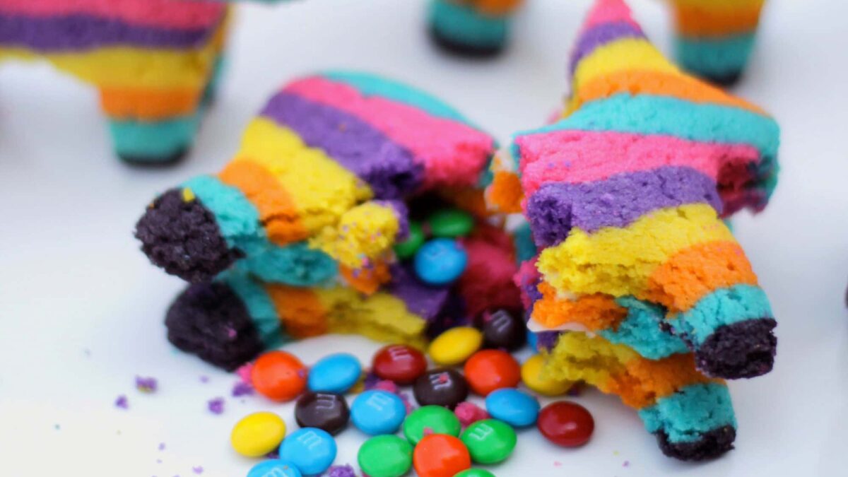 Tolles Rezept Für Kindergeburtstage: Knallbunte Esel-Piñata-Cookies, Mit Schokolinsen Gefüllte Kekse
